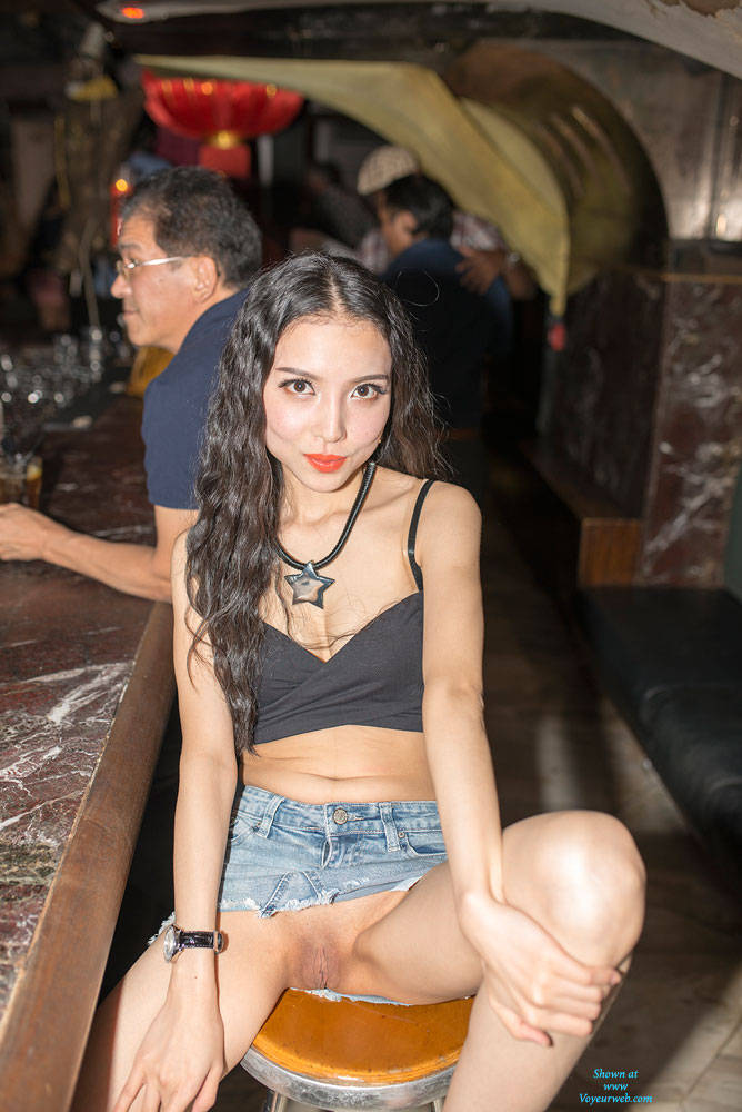 This is my first time showing my little pussy in public place. We went to few bar and I showed off and some happy customers support me. I like it! :-) Now I want to do more. Any ideas you think you want me to do for you? Jennifer Q.