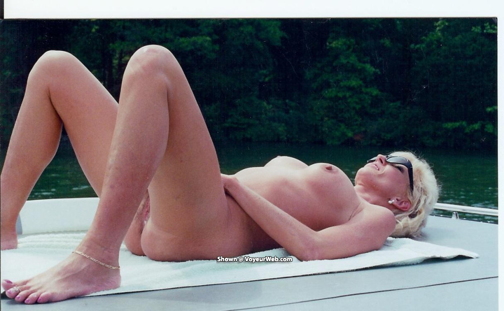 as everyone knows my sexy wife likes to lay out on the boat nude in the summer and loves to tease the jet skier's and other boaters, here are a few pics that i made and a couple of pics from some of our friends that were took from the water on other boats