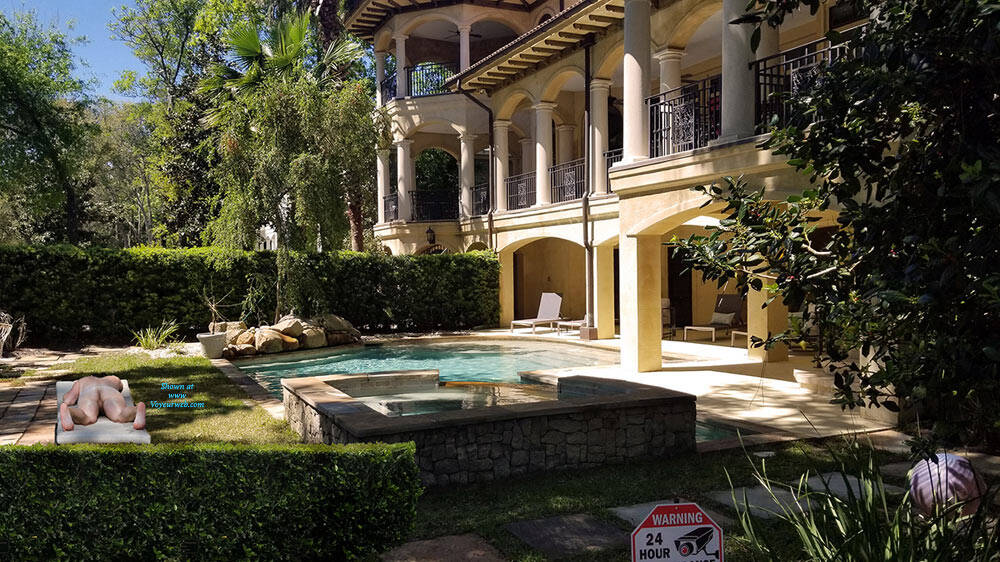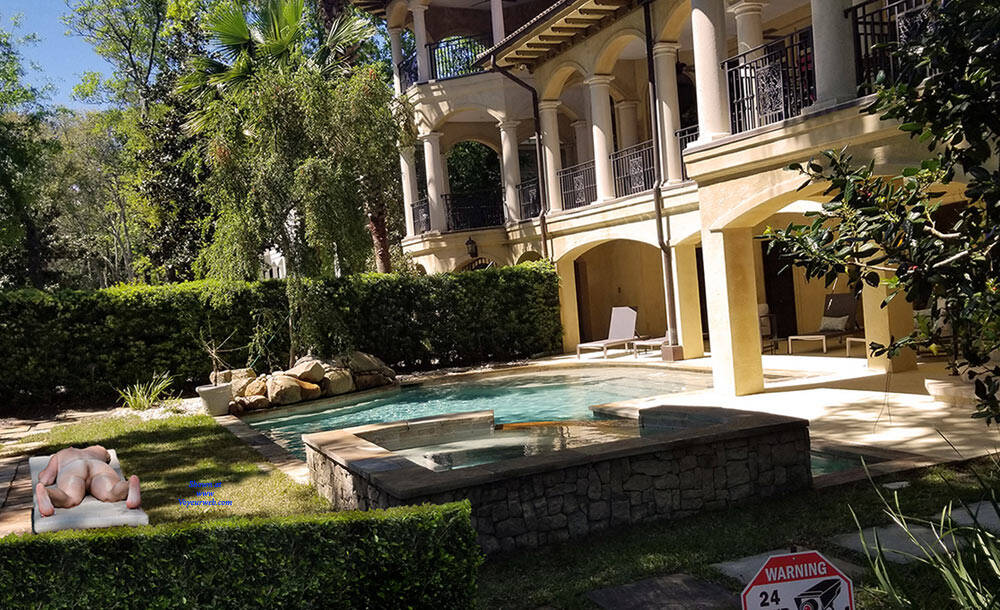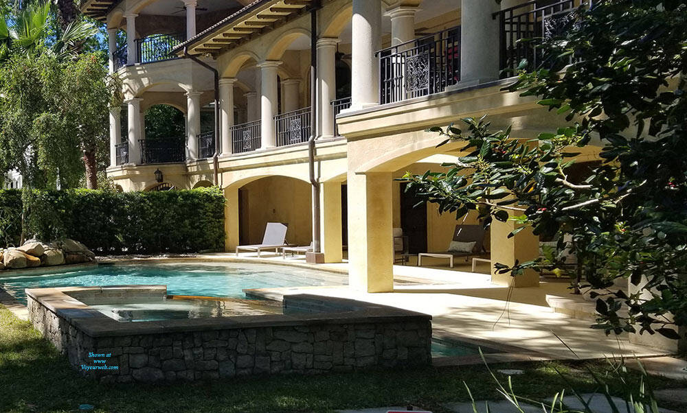 I was recently backing up my 2019 photos from my phone and discovered a lucky catch that I was unaware of at the time. I had a conference last April on Hilton Head Island and stayed at the Marriott right on Hilton Head Beach. One morning I took a walk along the ocean front, walking along the coast in front of what has to be multi-million dollar properties. About 40 minutes into the walk, the morning haze began to burn off as the sun became high over head and the temperature really started to rise. I decided I would take the next walkway that cut between the properties to the street and walk back to the hotel under the tree canopy lining the street just to get some shade. When I came to the next pathway, it was under construction so I continued on. As I got to the next path, there was tape indicating that it too, was under construction, but I could see that they had not yet begun to tear it out. So I ducked under the tape and made my way the few hundred yards toward the street. The walkway was lined on both sides with a very thick hedgerow giving a good level of privacy to the homeowners. As I walked I could sense the enormity of these homes and their gorgeous backyards, so when I had an opportunity, I reached my camera over the hedges and snapped a couple of pictures to see what the backyards looked like. I took a few pictures and quickly looked at them on my phone, with the bright sun I could see the pictures, but the glare prevented me from seeing any details. I walked back to the hotel and quickly forgot about the pictures. So you can imagine my surprise when I was backing up my phone pictures onto my home computer with a much larger screen and discovered a nude sunbather in the corner of a couple of shots. As a long time viewer (decades), but never contributor, I decided to share my finding with the voyeurweb community. I've "enjoyed" these pictures a few times imaging the sunbather is the ultra rich home owner.